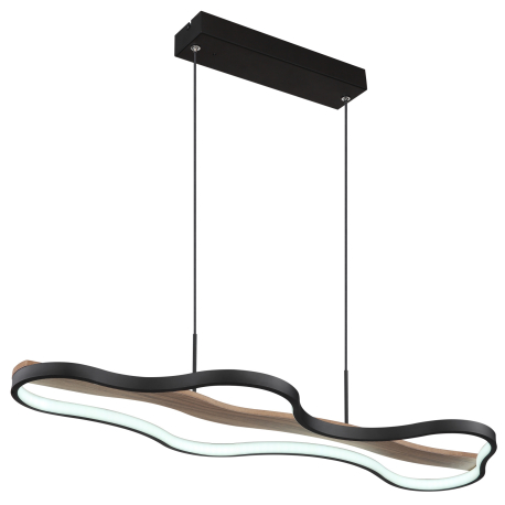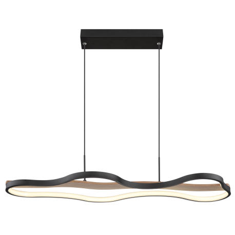 GL-67181H Závěsné svítidlo, kov, hliník černý matný, dřevo, stmívatelné, několik úrovní pomocí nástěnného vypínače, fixace barev, pam. funkce, noční světlo, dál. ovládání, Dx?xV:806x286x1500mm, LED 30W 230V, 3750lm zdroj, 2700-6000K - Bezzy LED