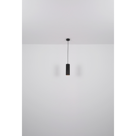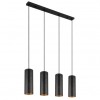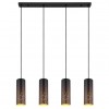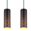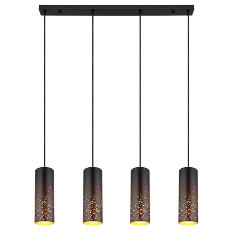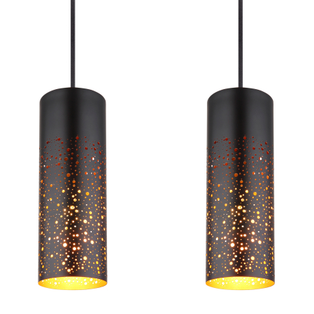 Moderné lustre vhodné do kuchyne alebo jedálne nad jedálenský stôl alebo kuchynský ostrovček, ale aj do obývacej izby. Sú vyrobené z kovu v elegantnej matnej čiernej a zlatej farbe, tienidlá sú zavesené na textilnom kábli. Tienidlo je dierované, čo po rozsvietení vyzerá veľmi efektne. |