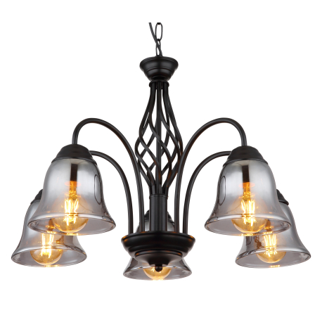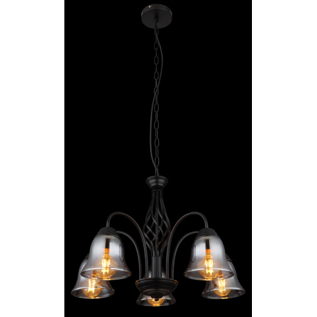 GL-60298-5H Závěsné svítidlo, kov černý matný, kouřové sklo, kabel PVC černý, Ø:555mm, V:1300mm, bez žárovek 5xE27,max. 60W 230V - Gonny
