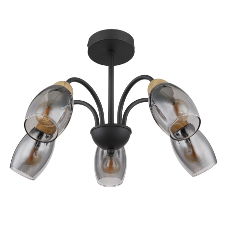 GL-60297-5D Stropní svítidlo kov černý matný, sklo kouřové, kov imitace dřeva, Ø:470mm, V:290mm, bez žárovek 5xE14 25W 230V - Gerly