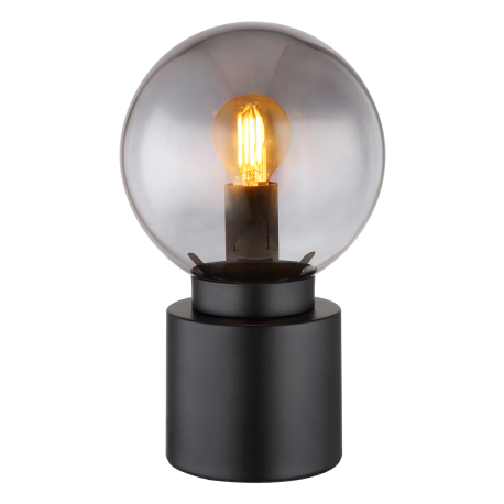 GL-21003B Stolní lampa, kov černý matný, sklo kouřové, kolébkový vypínač na kabelu, Ø:150mm, V:245mm, délka kabelu 1500mm, bez žárovky 1xE14, 25W 230V - Marka