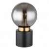 GL-21003BB Stolní lampa, kov černý matný, kov mosaz, sklo kouřové, kolébkový vypínač na kabelu, Ø:150mm, V:245mm, délka kabelu 1500mm, bez žárovky 1xE14, max. 25W 230V - Marka