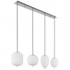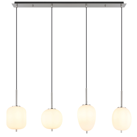 GL-15345-4NO Závěsné svítidlo kov nikl matný, sklo bílé, kabel PVC černý, možnost nastavení výšky, 4 různá skla, Dx?xV:1100x185x1200mm, Ø:stínítka: 15,8cm, 16,4cm, 16,5cm, 18,5cm, bez žárovek 4x E14 40W 230V - Blacky Globo