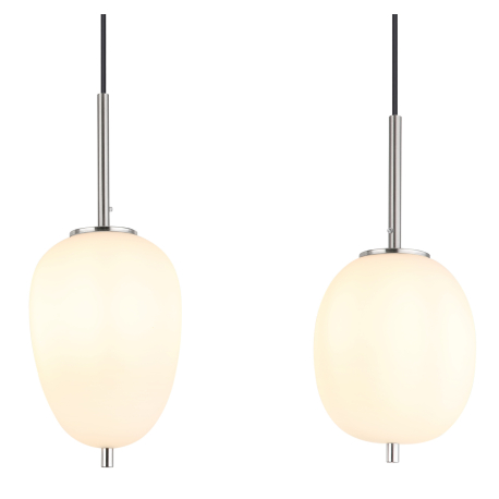 Zaujímavé svietidlá vyrobené z kovu vo farbe matný nikel a z opálového skla. Sú vhodné do kuchýň, jedální, obývacích izieb, spální, ale aj predsiení. |