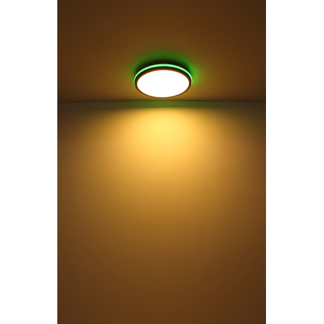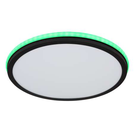 GL-41391-40R Stropní svítidlo kov černý matný, bílá, akryl bílý, stmívatelné, několik úrovní přes nástěnný spínač, RGB duhový efekt, paměťová funkce, dálkové ovládání, Ø:450mm V:70mm, LED 40W+5W RGB 230V, 425-4250lm zdroj, 200-2000lm výstup, CCT2700-6500K - Jaxxi + Morgan