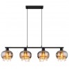 GL-15839-4H Závěsné svítidlo, kov černý matný, sklo kouřové, skleněné křišťály průhledné, textilní kabel černý, možnost nastavení výšky, Dx?xV:1140x210x1200mm, bez žárovek 4xE27 LED, Max. 9W 230V - Corry