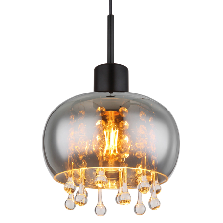 GL-15839H Závěsné svítidlo, kov černý matný, sklo kouřové, skleněné křišťály průhledné, textilní kabel černý, možnost nastavení výšky, Ø:210mm, V:1200mm, bez žárovky 1xE27 LED, max. 9W 230V - Corry