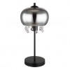 GL-15839T Stolní lampa, kov černý matný, sklo kouřové, skleněné křišťály průhledné, kabel textil černý, kolébkový vypínač na kabelu, Ø:210mm, V:450mm, délka kabelu 1500mm, bez žárovky 1xE27 LED, max. 9W 230V - Corry 2