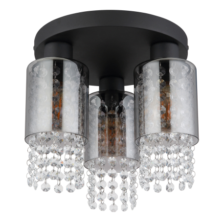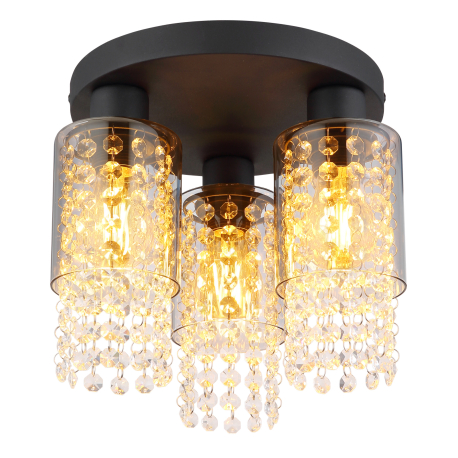 GL-15799-3D Stropní svítidlo kov černý matný, sklo kouřové, skleněné krystaly čiré, Ø:280mm, V:260mm, bez žárovek 3xE27 40W 230V - Backey