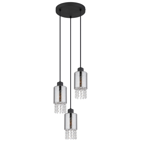 GL-15799-3H Závěsné svítidlo kov černý matný, sklo kouřové, sklo krystaly čiré, kabel PVC černý, Ø:250mm, V:1200mm, bez žárovek 3xE27 40W 230V - Backey
