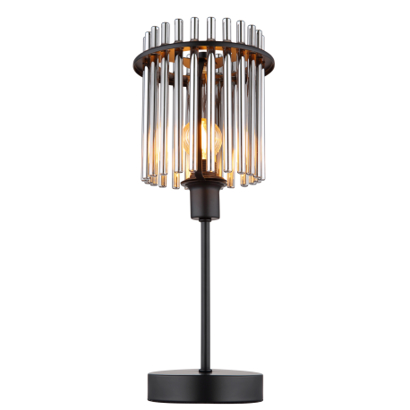 GL-15698T Stolní lampa, kov černý matný, skleněné tyčinky kouřové barvy, kabel PVC černý, kolébkový vypínač na kabelu, Ø:150mm, V:375mm, délka kabelu 1500mm, bez žárovky 1xE14, max. 40W 230V - Gorley 2