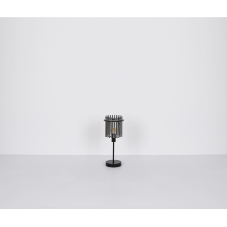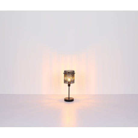 Základňa svietidla je vyrobená z kovu v matnej čiernej farbe a tienidlo je zo sklenených tyčiniek v dymovej farbe. Osadením tejto lampy a stolnej lampičky do vášho interiéru získate zaujímavý dizajnový kúsok. |