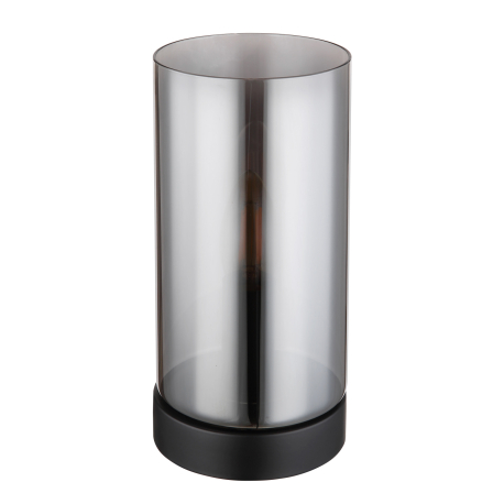 GL-21002T Stolní lampa, kov černý matný, sklo kouřové, kolébkový vypínač na kabelu, Ø:110mm, V:220mm, délka kabelu 1500mm, bez žárovky 1xE14, 25W 230V - Olly 2