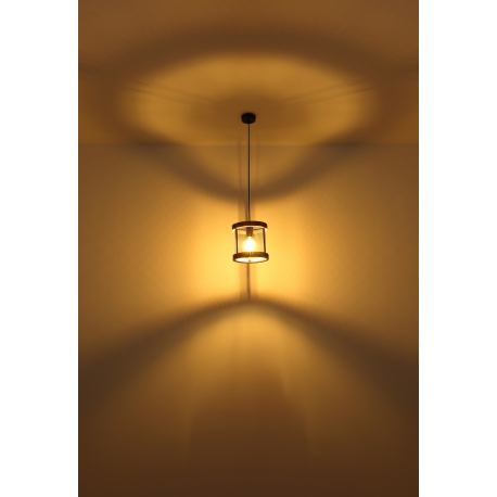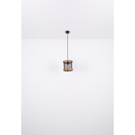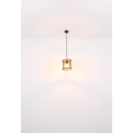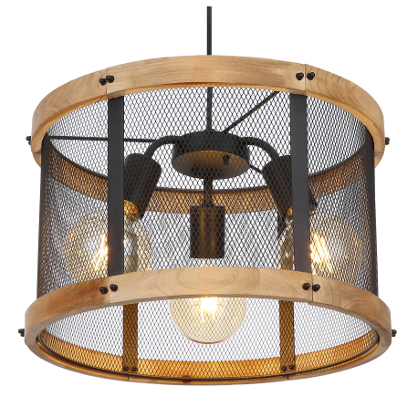 GL-15661H1 Závěsné svítidlo kov černý matný, dřevo tmavě hnědé, kabel textil černý, Ø:400mm, V:1200mm, bez žárovek 3x E27 40W 230V - Jeanie