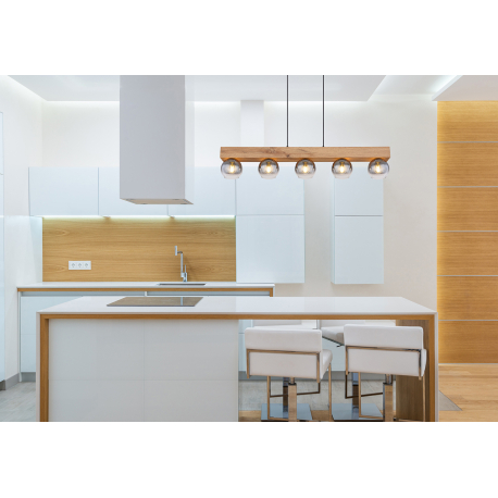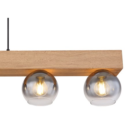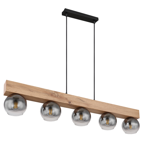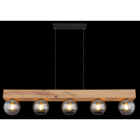 GL-15656-5H Závěsné svítidlo kov černý matný, MDF imitace dřeva, sklo kouřové, čiré, textilní kabel černý, výškově nastavitelné, Dx?xV:1150x150x1200mm, bez žárovek 5x E27 40W 230V - Moitas