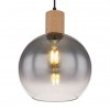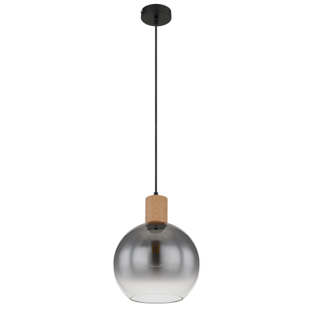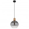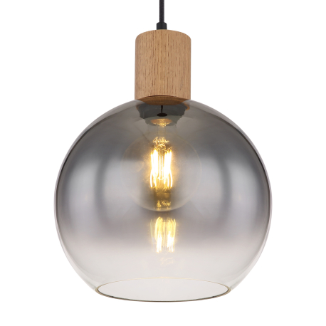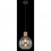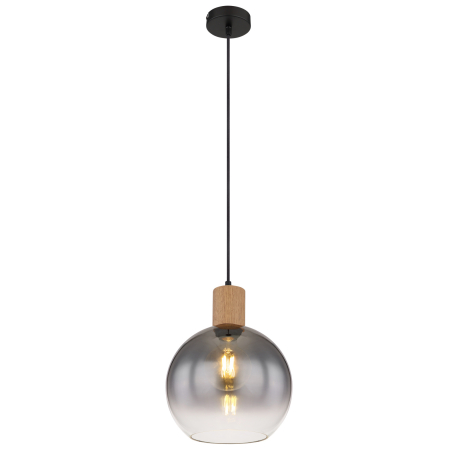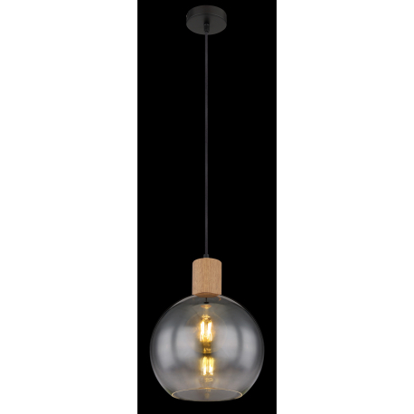 GL-15656H Závěsné svítidlo kov černý matný, MDF, imitace tmavého dřeva, kouřové sklo, textilní kabel černý, možnost nastavení výšky, Ø:250mm, V:1200mm, bez žárovky 1xE27 40W 230V - Moitas