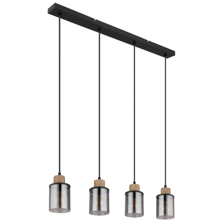 GL-15707-4H Závěsné svítidlo kov černý matný, dřevo tmavě hnědé, sklo kouřové, kabel PVC černý, Dx?xV:780x100x1200mm, bez žárovek 4xE27 15W 230V - Reid 2