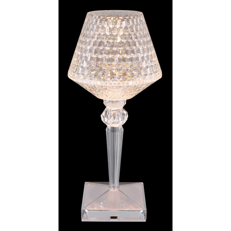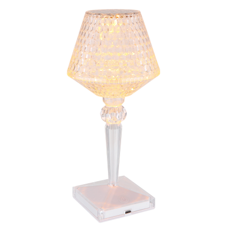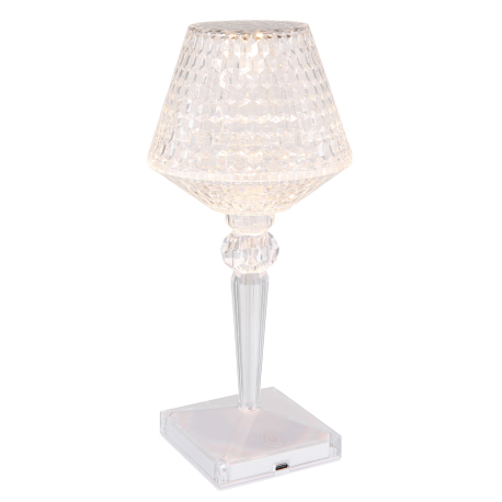 GL-28070 Stolní svítidlo čirý plast s křišťálovým efektem, dotykové zapnutí/vypnutí, stmívatelné, plynulý dotykový stmívač, bez adaptéru, baterie 800 mAh 3,7 V, Ø:120mm, V:260mm, délka kabelu 800mm, LED 1,5W 5V, výstup 50lm, CCT2700-6500K - Gixi