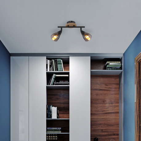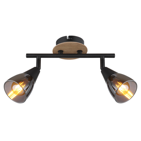 GL-54311-2 Nástěnné svítidlo, bodové, kov černý matný, dřevo hnědé, sklo kouřové, Dx?xV:255x100x195mm, bez žárovek 2xE14,max. 25W 230V - Mubby