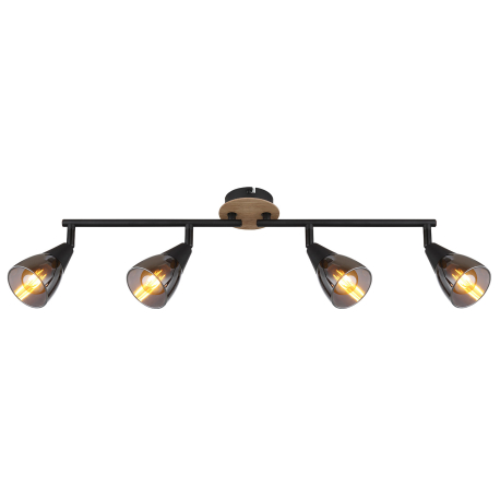 GL-54311-4 Stropní svítidlo, bodové, kov černý matný, dřevo hnědé, sklo kouřové, nastavitelné, Dx?xV:600x100x190mm, bez žárovek 4xE14,max. 25W 230V - Mubby
