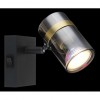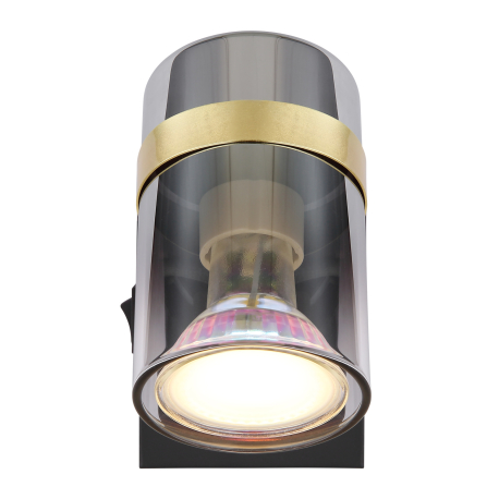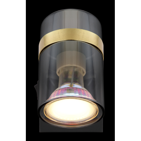 GL-57916-1 Nástěnné svítidlo, kov černý matný, kouřové sklo s přechodem do průhledného skla, kov mosaz, kolébkový vypínač, ?xV:70x96mm, H:125mm, bez žárovky 1xGU10,max. 8W 230V - Trabby