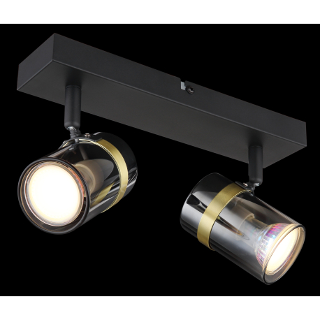 GL-57916-2 Nástěnné svítidlo, bodové, kov černý matný, kouřové sklo s přechodem do průhledného skla, mosaz, Dx?xV:260x60x125mm, bez žárovek 2xGU10,max. 8W 230V - Trabby