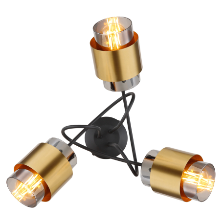 GL-15560-3D Stropní svítidlo kov černý matný, sklo kouřové, mosazný kroužek, Ø:500mm, V:260mm, bez žárovek 3x E27 40W 230V - Milley Globo