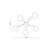 Moderné stropné svietidlá vyrobené z kovu, skla a plastu v elegantnej čiernej farbe. Kovová základňa má na ramená, na ktorých sú zavesené sklenené gule. |