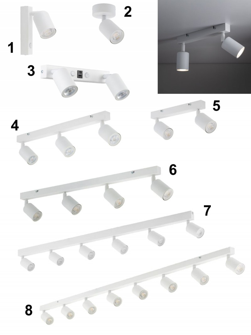 Bodové svietidlá vyrobené z kovu v bielej farbe. Sú vhodné do obývacích izieb, spální, pracovní, chodieb aj predsiení. |