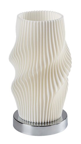 Lampička Tiana je vyrobená z kovu a plastu v chrómovej a bielej farbe. Je elegatného tvaru, vhodné do obývacích izieb, kuchýň, jedální i spální. So závitom E14. |