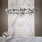 Moderné lustre vyrobené z kovu v elegantnej čiernej farbe, tienidlá tvoria sklenené gule v dymovej farbe. Sú vhodné do obývacích izieb, kuchýň, jedální, spální a pod. |