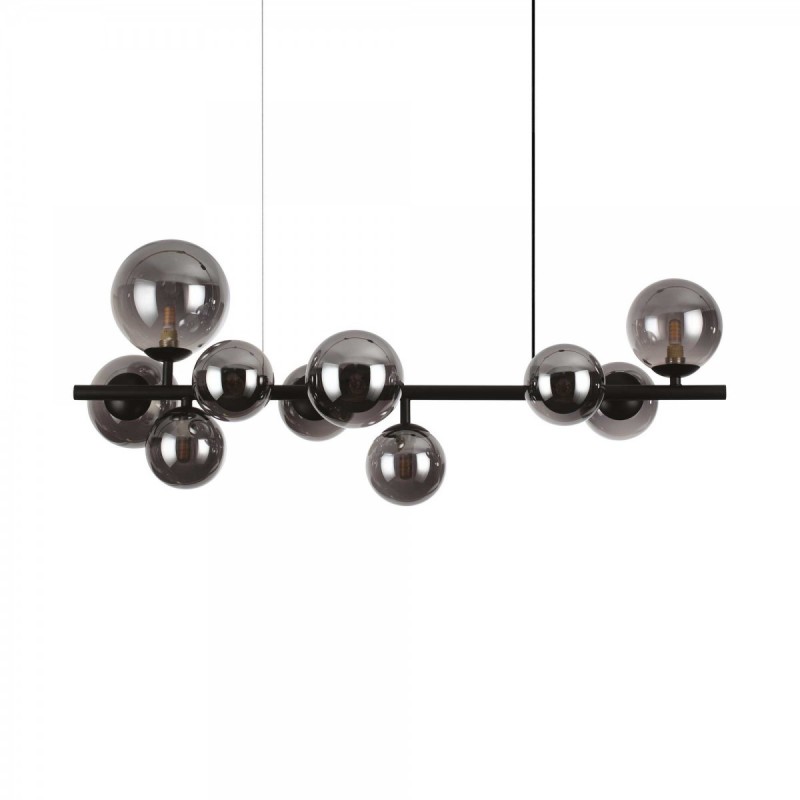 Moderné lustre vyrobené z kovu v elegantnej čiernej farbe, tienidlá tvoria sklenené gule v dymovej farbe. Sú vhodné do obývacích izieb, kuchýň, jedální, spální a pod. |