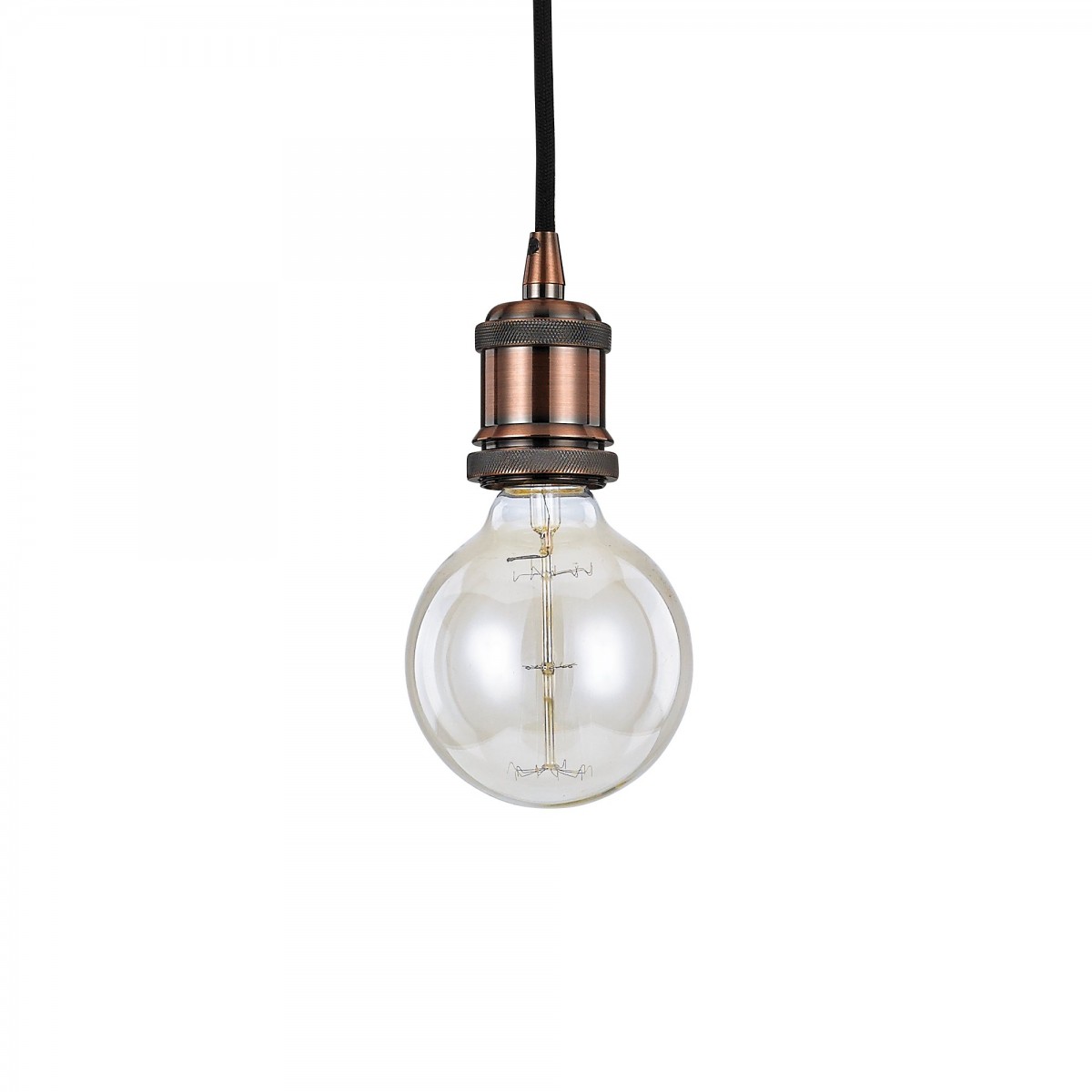 Moderné závesné svietidlo vyrobené z kovu s textilným káblom. Na klasický závit E27. |