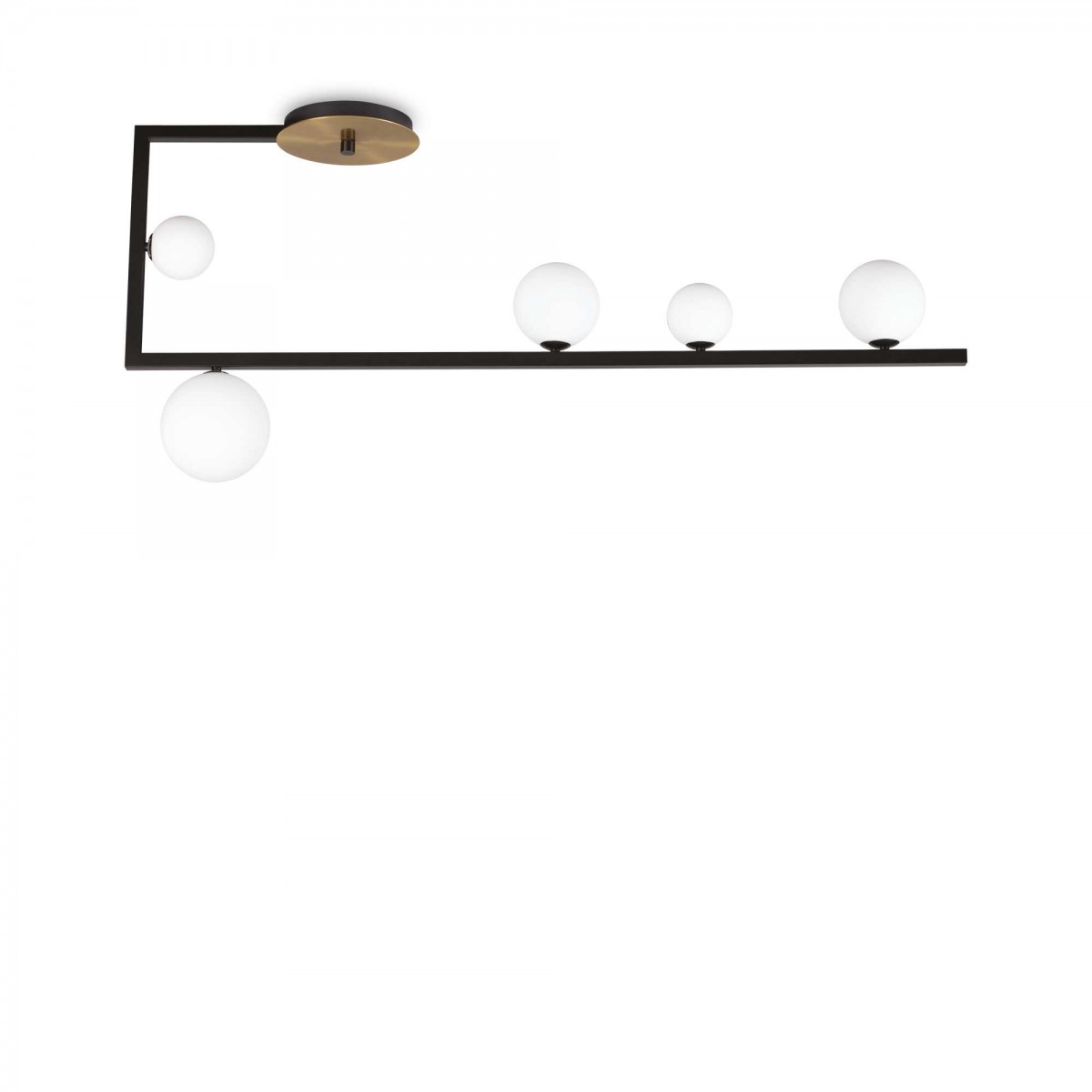 Elegantné svietidlá vyrobené z kovu a skla. Základňa svietidla je v matnej čiernej farbe, doplnená o matnú mosadznú, sklenené gule tienidiel sú v bielej farbe. Sú vhodné do obývacích izieb, spální, predsiení a pod. Dodávajú sa vrátane žiaroviek so závitom G9. |
