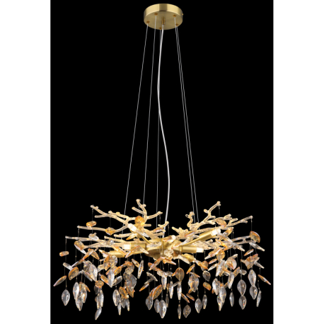 GL-64132-8 Závěsné svítidlo, kov zlatý matný, skleněné křišťály, jantarové, čiré, Ø:610 mm, V:1200 mm, bez žárovek 8mG9, Max. 8W 230V - Danna