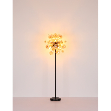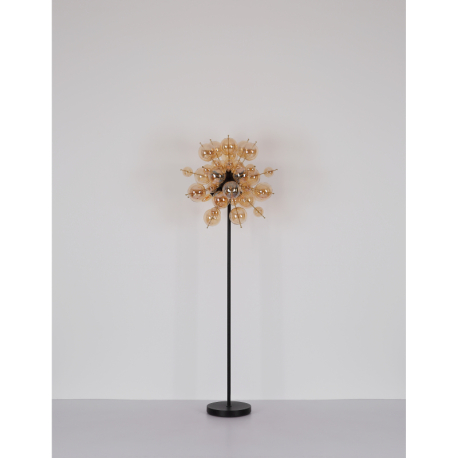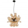 GL-15633HA Závěsné svítidlo, kov černý, kov zlaté barvy, skleněné koule jantarové barvy, kabel PVC černý, možnost zkrácení výšky, ø:550mm, V:1200mm, skleněné koule ø:24x6cm, 24x10cm, bez žárovek 6xE14 , Max. 25W 230V - Udo