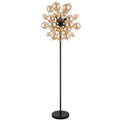 GL-15633SA Stojací svítidlo, kov černý, kov zlaté barvy, skleněné koule jantarové, kabel PVC černý, vypínač na kabelu, ø:550mm, V:1550mm, délka kabelu 1800mm, skleněné koule ø:24x6cm, 24x10cm , bez žárovek 6xE14, Max. 25W 230V - Udo 2
