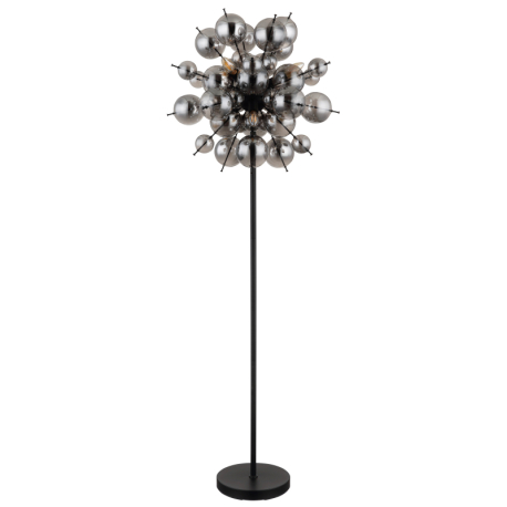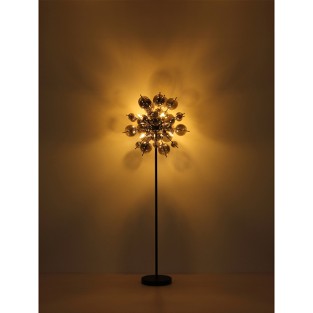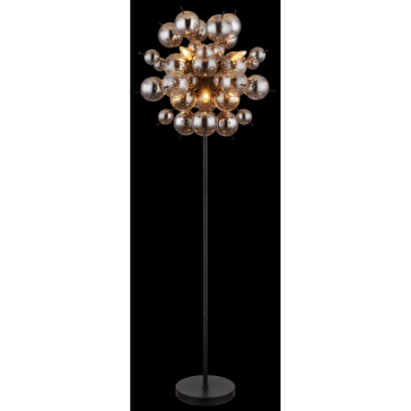 GL-15633SS Stojací svítidlo, kov černý matný, skleněné koule kouřové barvy, kabel PVC černý, vyínač na kabelu, ø:550mm, V:1550mm, délka kabelu 1800mm, skleněné koule ø:24x6cm, 24x10cm, bez žárovek 6xE14, Max. 25W 230V - Udo 2