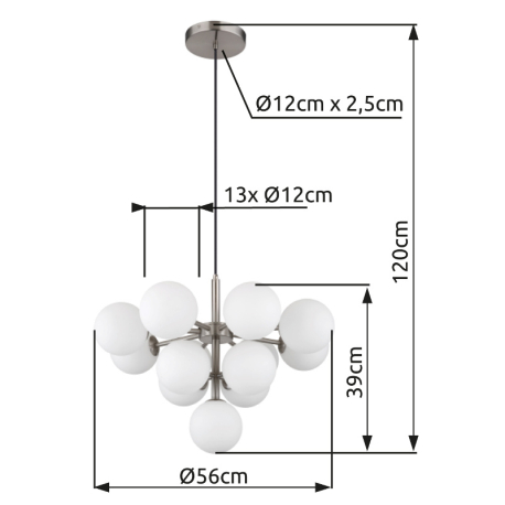 GL-56143-13N Závěsné svítidlo, kov nikl, sklo bílé, černý textilní kabel, ø:560mm, V:1200mm, bez žárovek 13xG9 LED, max. 2 5W 230V - Udo+Grappy