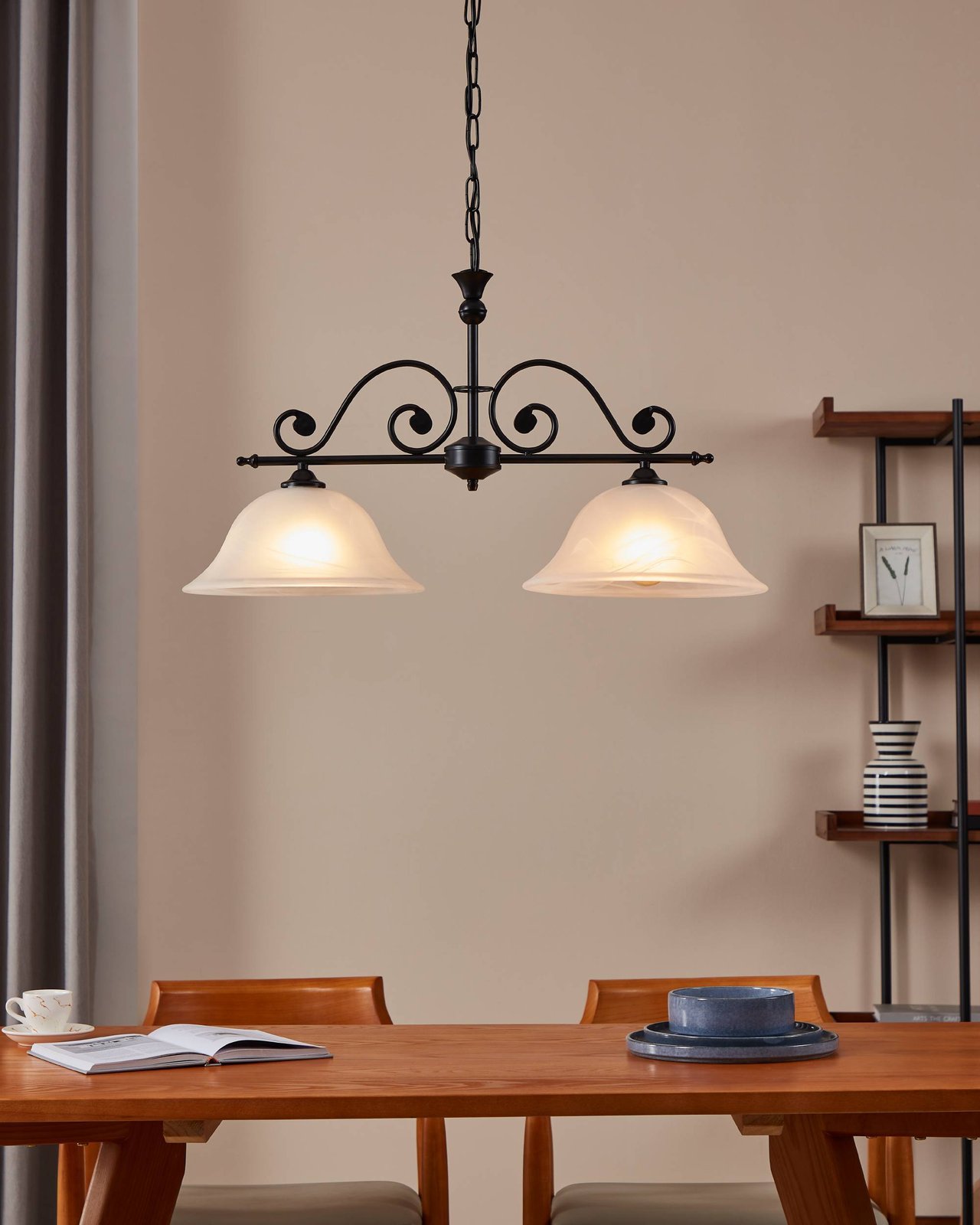 Svietidlá v klasickom štýle Murcia sú vyrobené z ocele v čiernej farbe a bieleho alabastrového skla. Sú vhodné predovšetkým do kuchýň a jedální, ale aj do obývacích izieb. |
