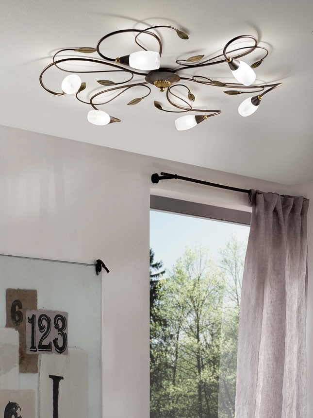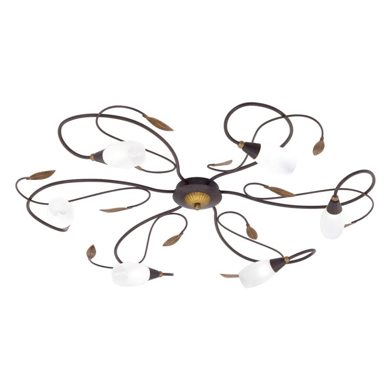 Zaujímavé stropné svietidlo vyrobené z ocele v antickej hnedej a zlatej farbe a zo skla v bielej farbe. Toto svietidlo bude zaujímavým prvkom nielen v obývacej izbe, ale aj v spálni, chodbe alebo predsieni. Dodáva sa vrátane žiaroviek so závitom G9. |