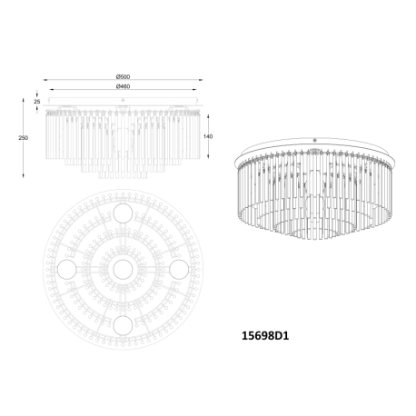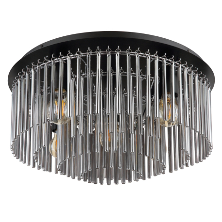 GL-15698D1 Stropní svítidlo, kov černý, chrom, skleněné tyče kouřové barvy, ø:500mm, V:250mm, bez žárovek 5xE27, max. 60W 230V - Gorley