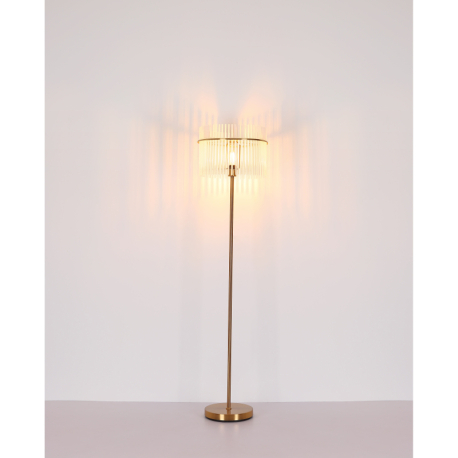 Moderné svietidlá vhodné do všetkých interiérov. Základňa svietidla je vyrobená z kovu v zlatej farbe a tienidlo je zo sklenených tyčiniek v bielej farbe. Osadením týchto svietidiel do vášho interiéru získate zaujímavý dizajnový kúsok. |