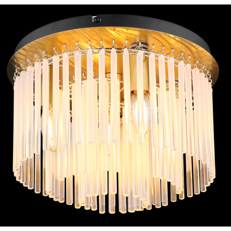 GL-15698DM Stropní svítidlo, kov zlatá barva matná, černá, skleněné tyče bílé, průhledné, ø:320mm, V:230mm, bez žárovek 5x E14, max. 40W 230V - Gorley gold