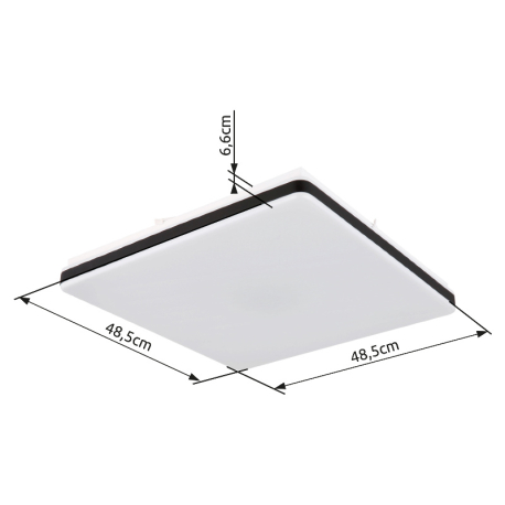 GL-48025OBSH Stropní svítidlo, kov bílý, plast černý, akryl opál, stmívatelné, fixace barev, SmartLight, pam. funkce, noční světlo, časovač, dál. ovládání, Dx?xV:485x485x66mm, LED 24W 230V, Výstup 100-1400lm, změna barvy světla 2700-6500K - Ully LED SMART