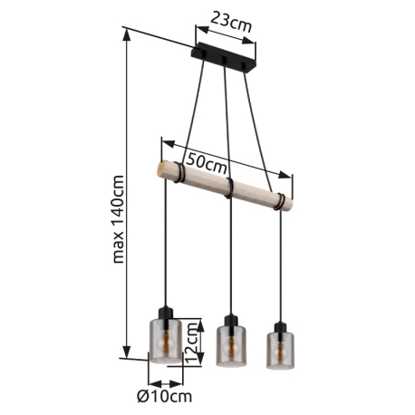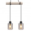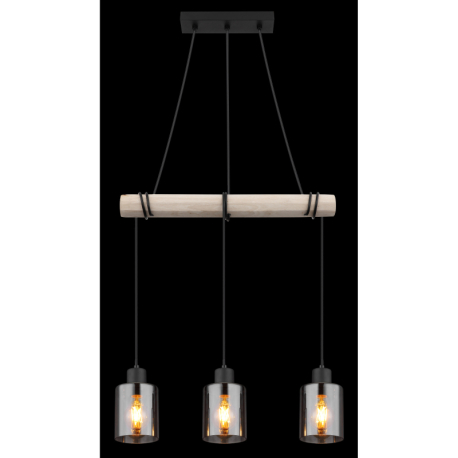 GL-15465-3H Závěsné svítidlo, kov černý, dřevo přírodní barva, sklo kouřová barva, kabel na omotání, Dx?xV:500x100x1400mm, bez žárovek 3xE27, max. 40W 230V - Hadera I