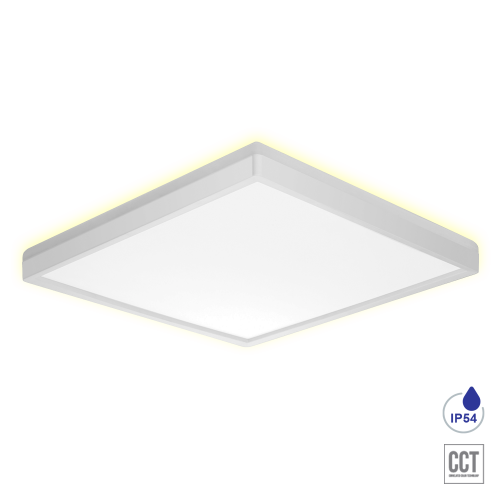 Moderné hranaté svietidlo na strop z plastu v elegantnej bielej farbe. Vďaka IP54 ochrane sa hodí aj do vlhkého prostredia ako je kúpeľňa, toaleta alebo terasa. Nastavenie teploty svietenia 3000-6000K.