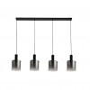 Searchlight závesné svietidlo farba čierna, povrchová úprava matná prášková farba, použitý materiál je mäkká oceľ a sklo. Rozmery v cm: celková výška: 150, výška: 35, šírka: 22, dĺžka: 142, výstupok: 0. Svetelný zdroj pätica E27, potrebné 4 žiarovky, svetelný zdroj nie je súčasťou balenia, výrobcom odporúčaný typ žiarovky je klasická žiarovka pre max. 60 W. |