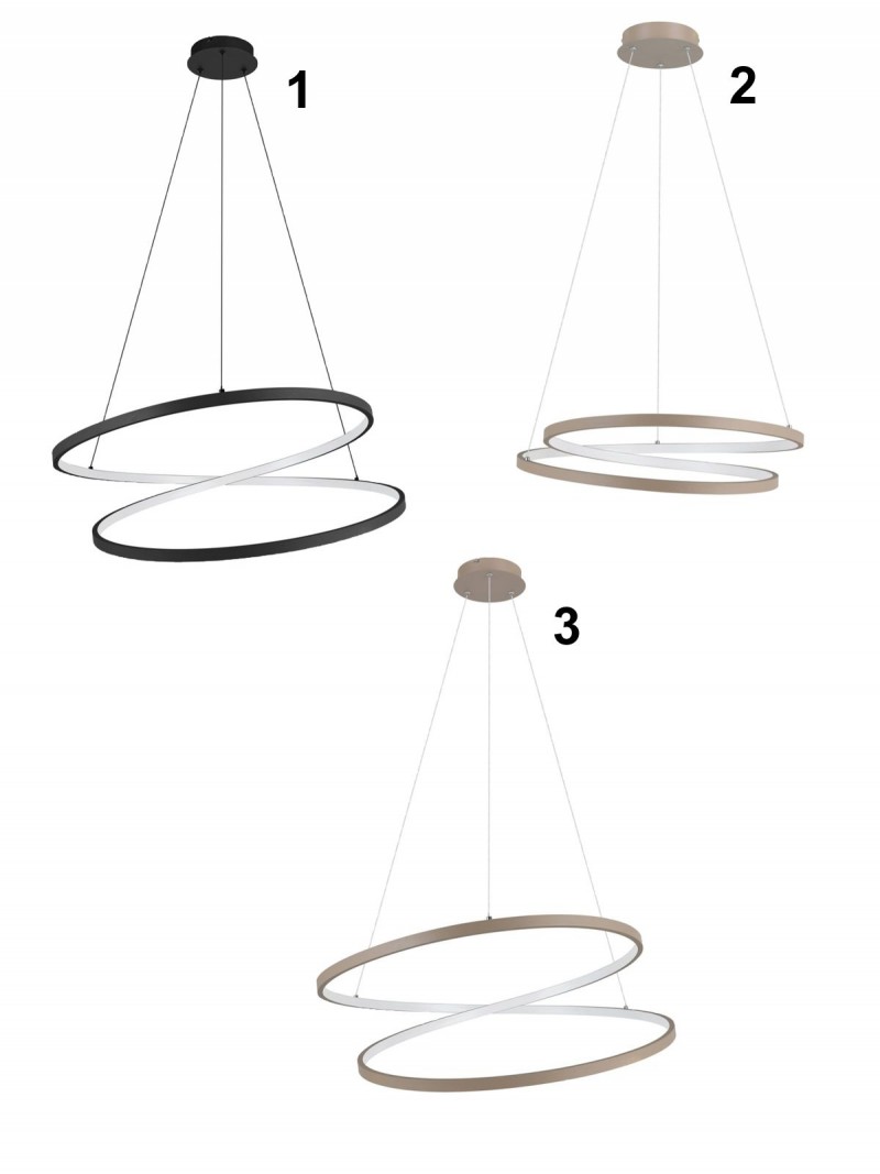Moderné závesné svietidlá vyrobené z hliníka, ocele a plastu. Svieti teplou bielou farbou, čo v interiéri pôsobí príjemným dojmom. Svietidlá nie je možné stmievať. |