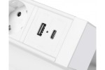 GTV-AE-GMBAS3S2U-10 - Nábytková zásuvka Basco, 3 x zásuvka Schuko, USB A+C, kabel 1,5 m, bílá s montáží